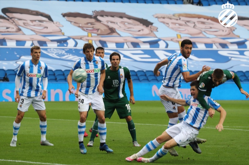 西班牙人客场1-2皇家社会,大卫-洛佩斯头球破门