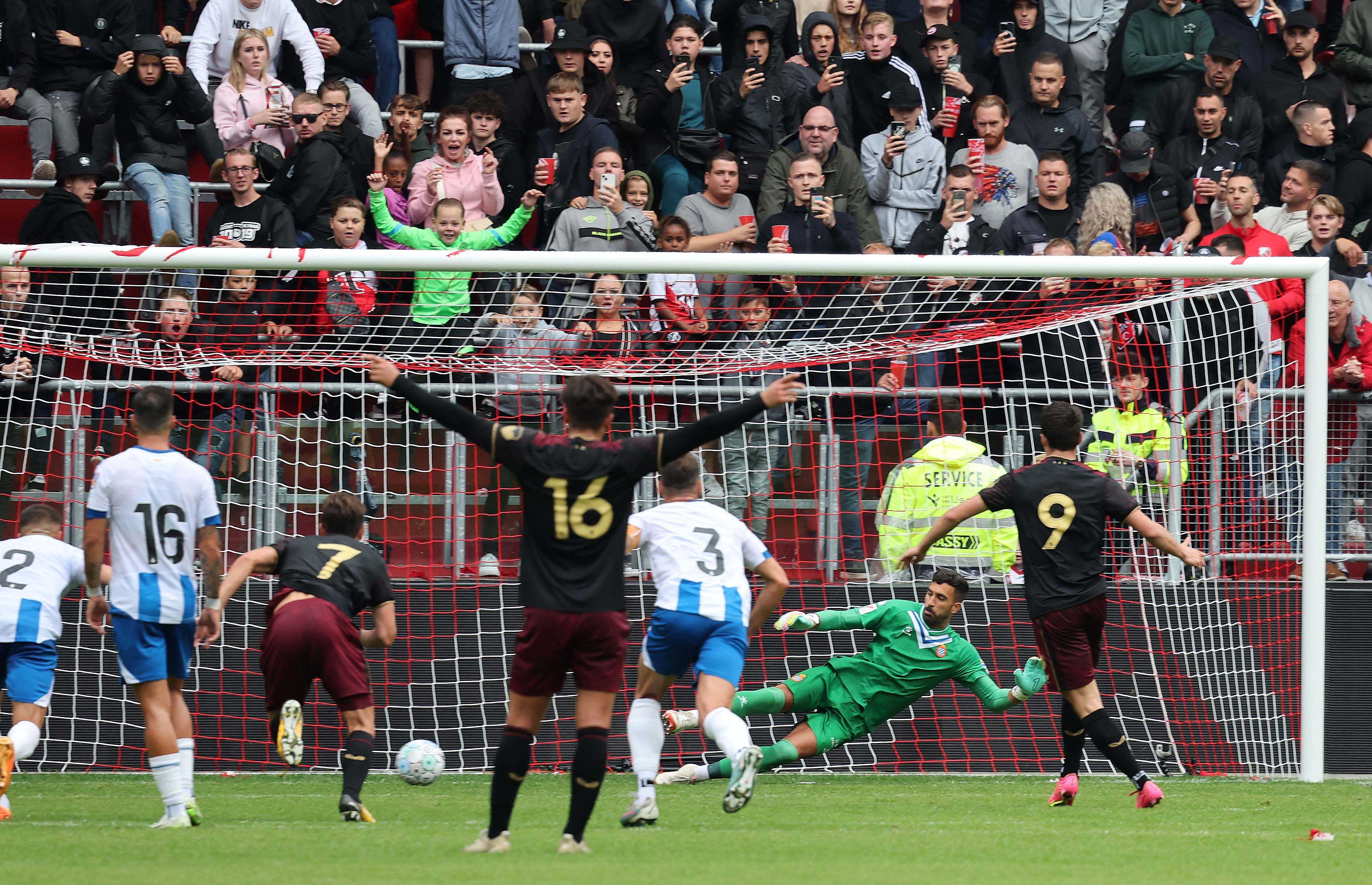 第2分钟,对手打进一球。乌德勒支1-0西班牙人。