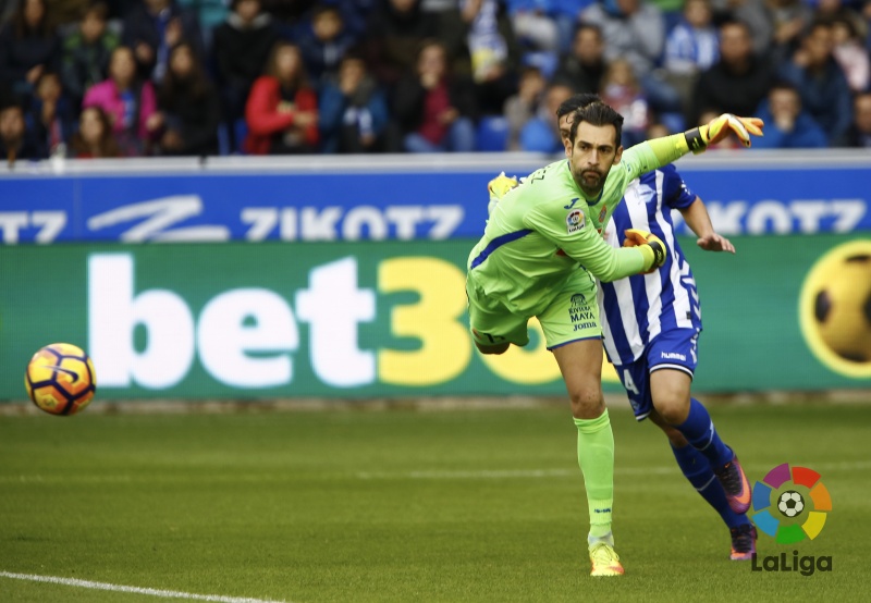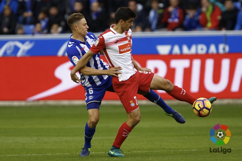 事实上,本场比赛球队踢得比较艰难,上半场主队阿拉维斯占据场上主动,多亏守门员迭戈-洛佩斯屡次救险力保大门不失。据西甲联赛官方数据统计显示,“章鱼哥”以79%的扑救成功率位列西甲第一。老将雷耶斯的任意球击中横梁成为西班牙人上半场唯一的进攻亮点。
