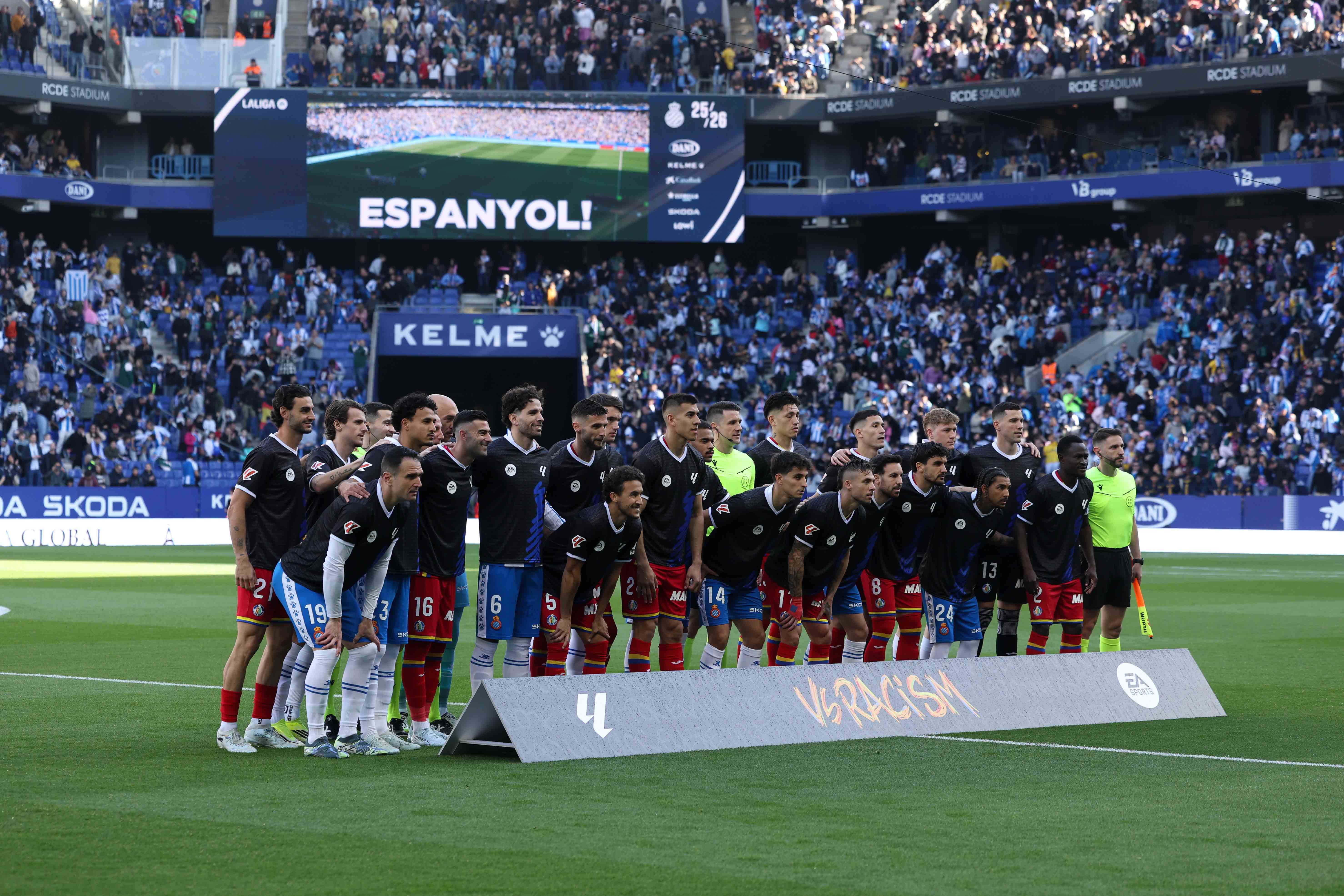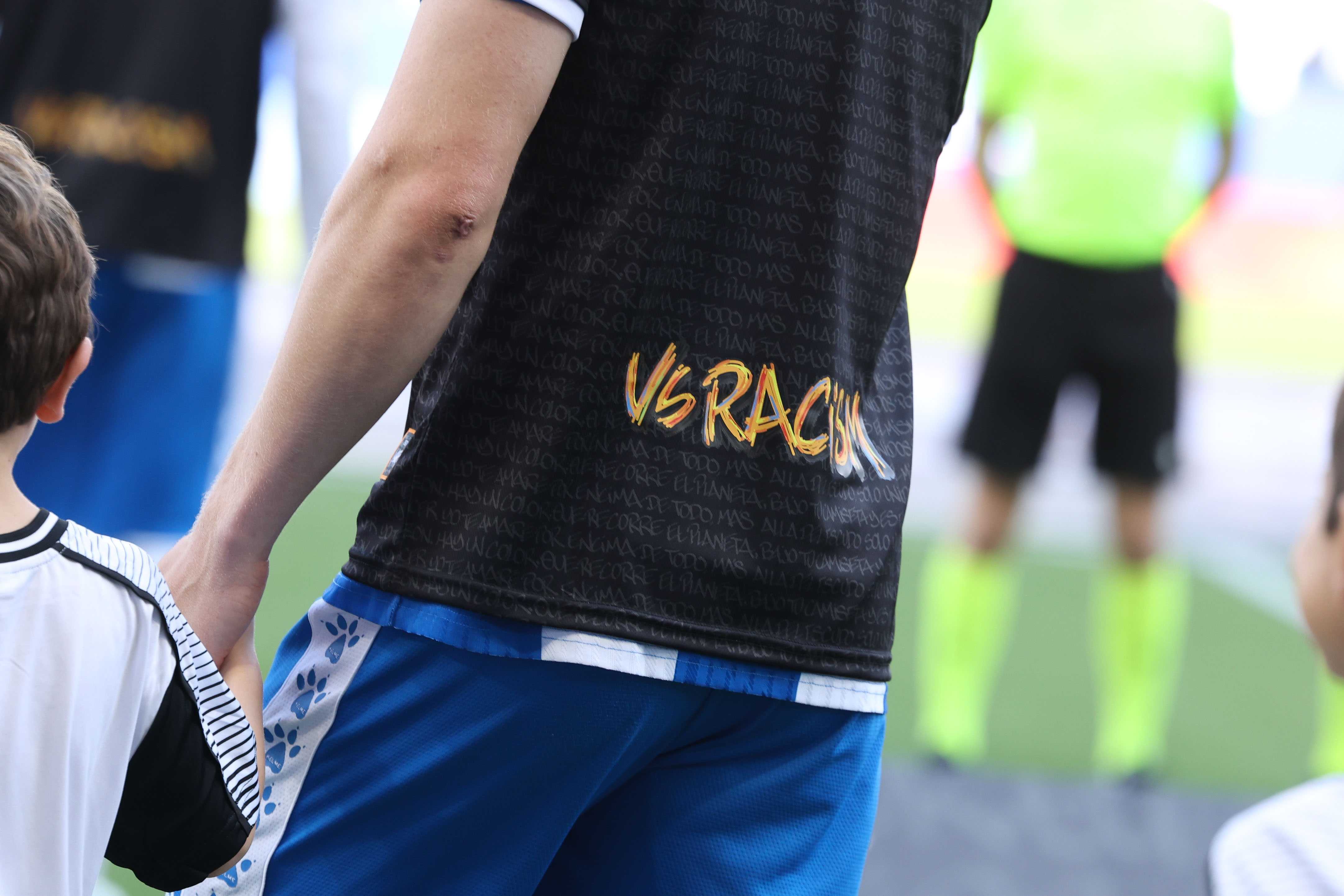 3月21日为消除种族歧视国际日,在这一重要纪念日,西班牙人俱乐部与赫塔费俱乐部在双方于RCDE球场展开的比赛中共同展现了团结一心、坚守反种族歧视立场的坚定姿态。 双方球员身着专属反种族主义纪念球衣步入赛场,赛前共同摆出印有“反对种族主义”字样的合影造型,全力声援西甲联赛发起的反对一切形式歧视的公益活动。除此之外,两队队长比赛佩戴的队长袖标也采用了契合本次消除种族歧视国际日的专属设计。