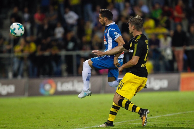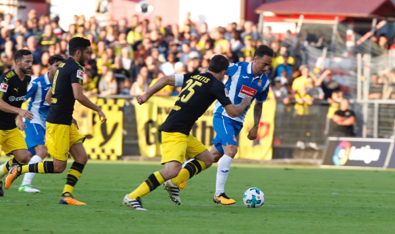 多特蒙德的奥巴梅杨、格策和许尔勒等名将首发出场,西班牙人方面主力杰拉德、迭戈-洛佩斯、佩雷斯等球员有伤留在了巴塞罗那康复。