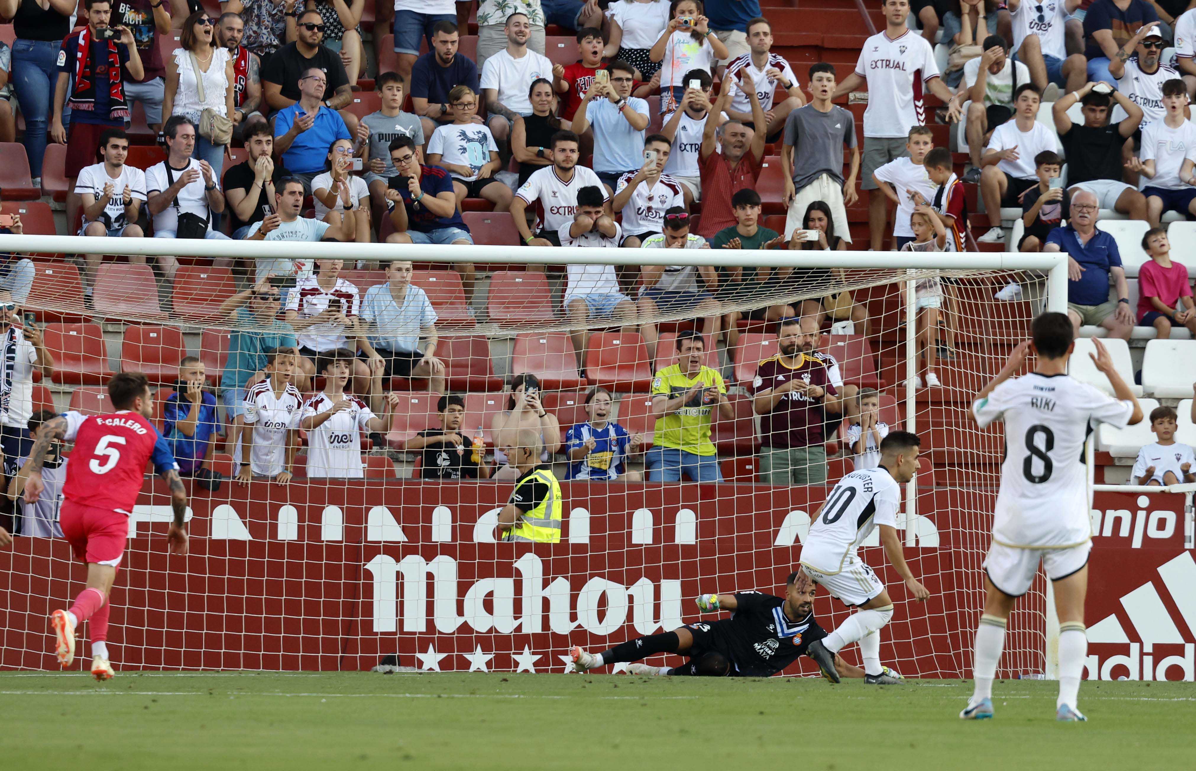 第40分钟,希尔45度传中入禁区,卡夫雷拉前点一甩,卡莱罗点射破门。阿尔瓦塞特0-1西班牙人。