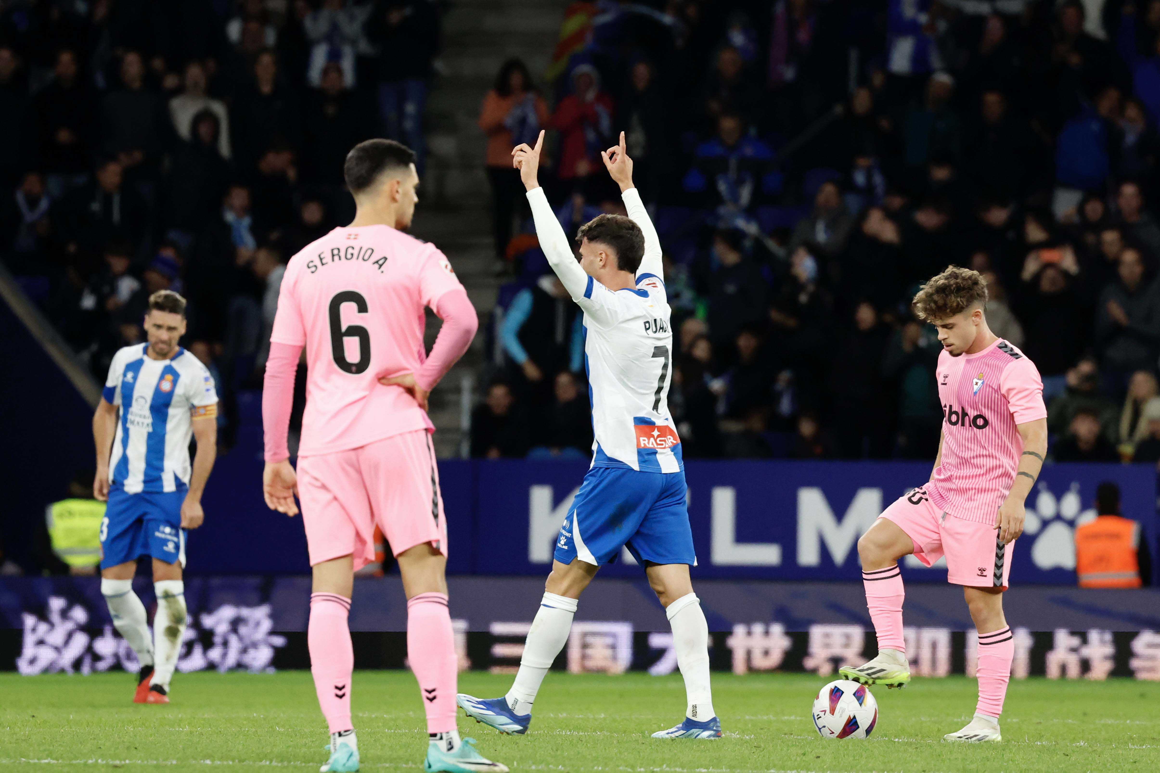 普阿多梅开二度,西班牙人战平埃瓦尔