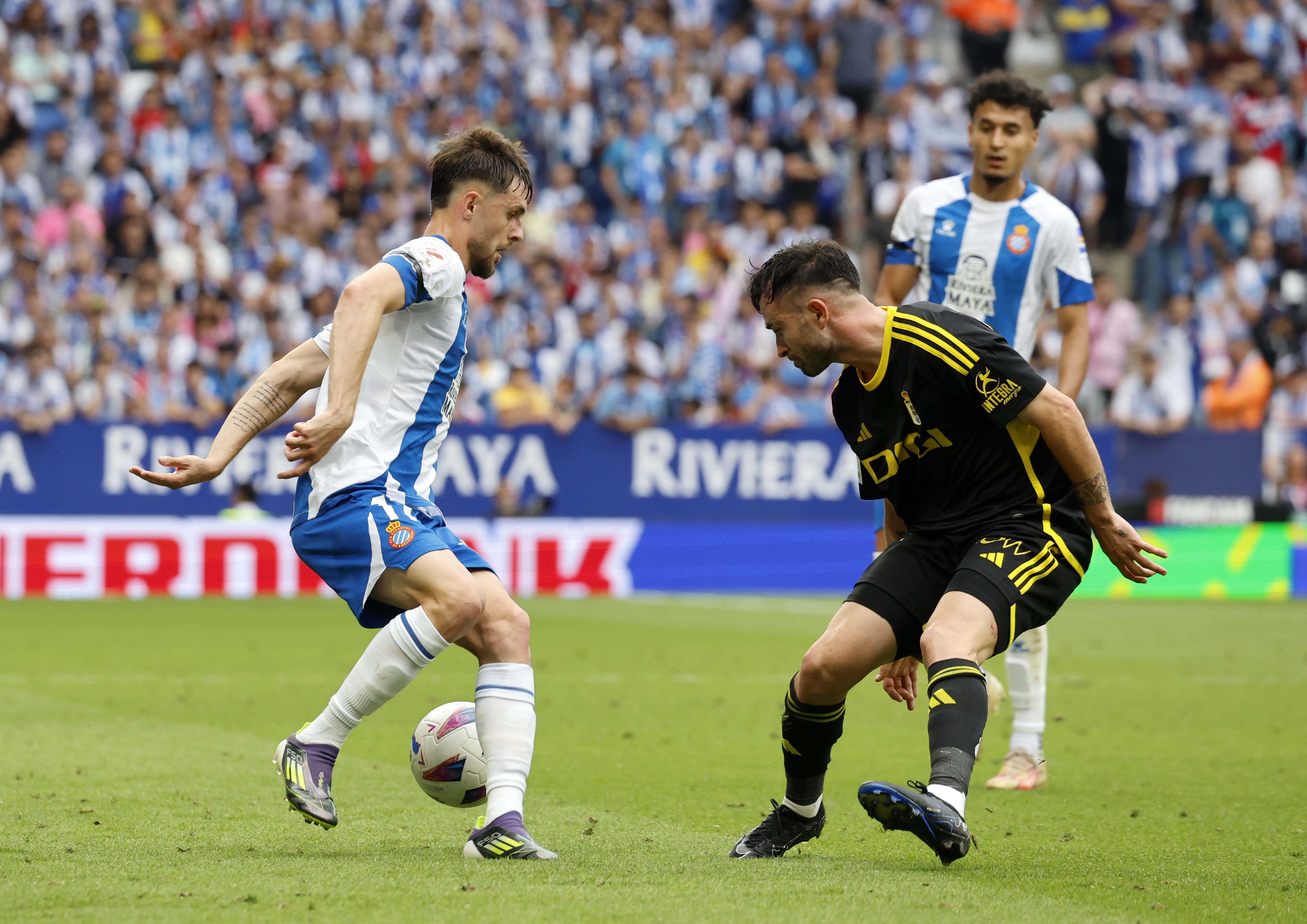 北京时间6月24日,西乙升级附加赛决赛次回合,西班牙人对阵皇家奥维耶多,首回合西班牙人客场0-1不敌对手。比赛上半场普阿多梅开二度帮助球队反超总比分。最终,西班牙人2-0皇家奥维耶多,总比分2-1击败对手,锁定下赛季西甲席位。