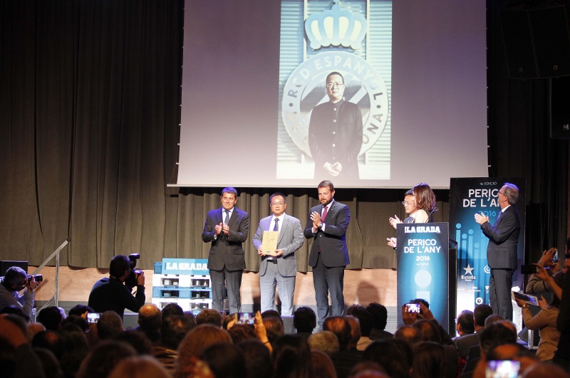 近日,西班牙ZETA传媒集团属下的《看台日报》举行了第四届2016年度鹦鹉颁奖典礼,皇家西班牙人足球俱乐部主席陈雁升先生荣膺年度鹦鹉奖,他表示这个奖应属于所有⻄班牙人球迷和群体,没有大家的支持就没有球队今天的成绩。