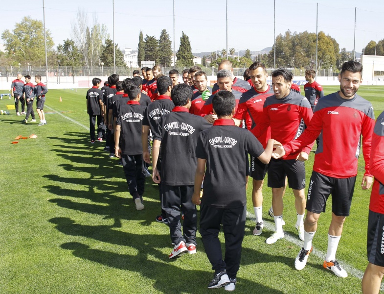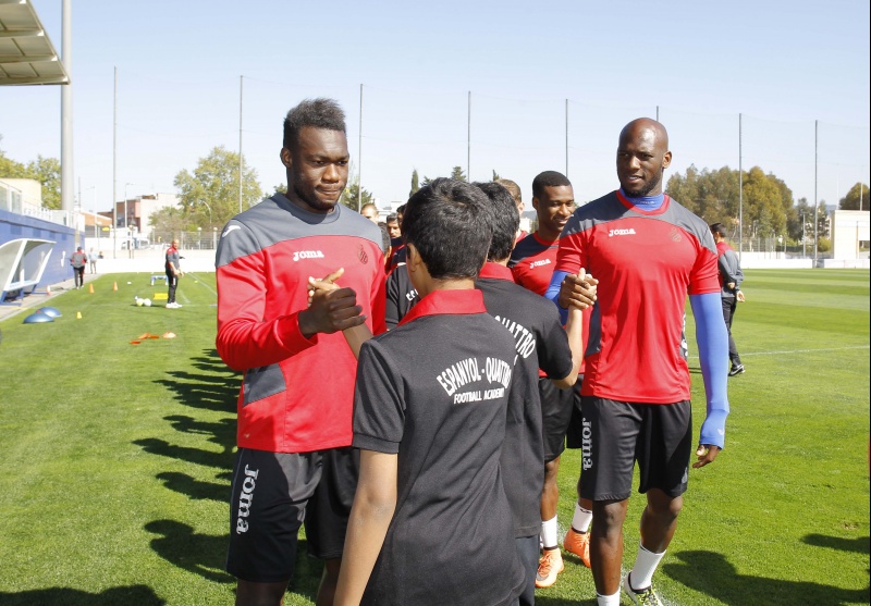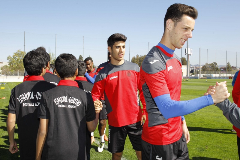 后退 西班牙人阿联酋足球学校的小学员们来访 一线队 俱乐部、社会和球迷 07/04/2016 18:00:00 4月7日,西班牙人国际足球学校-阿联酋分校Quattro Academy的小学员们抵达丹尼-雅克训练基地,同一线队的球员们见面畅谈。他们将会在此进行一周的训练学习。这15名小球员将在西班牙人梯队教练的指导下进行特别训练,并且可以近距离观看一线队和B队的训练。之后还会安排小球员们参观科尔内亚球场,了解球队历史,以及不能缺少的巴塞罗那市内游。 西班牙人国际足球学校分布在全球各个国家,其中阿联酋分校自2014年9月成立以来,在当地收获好评。