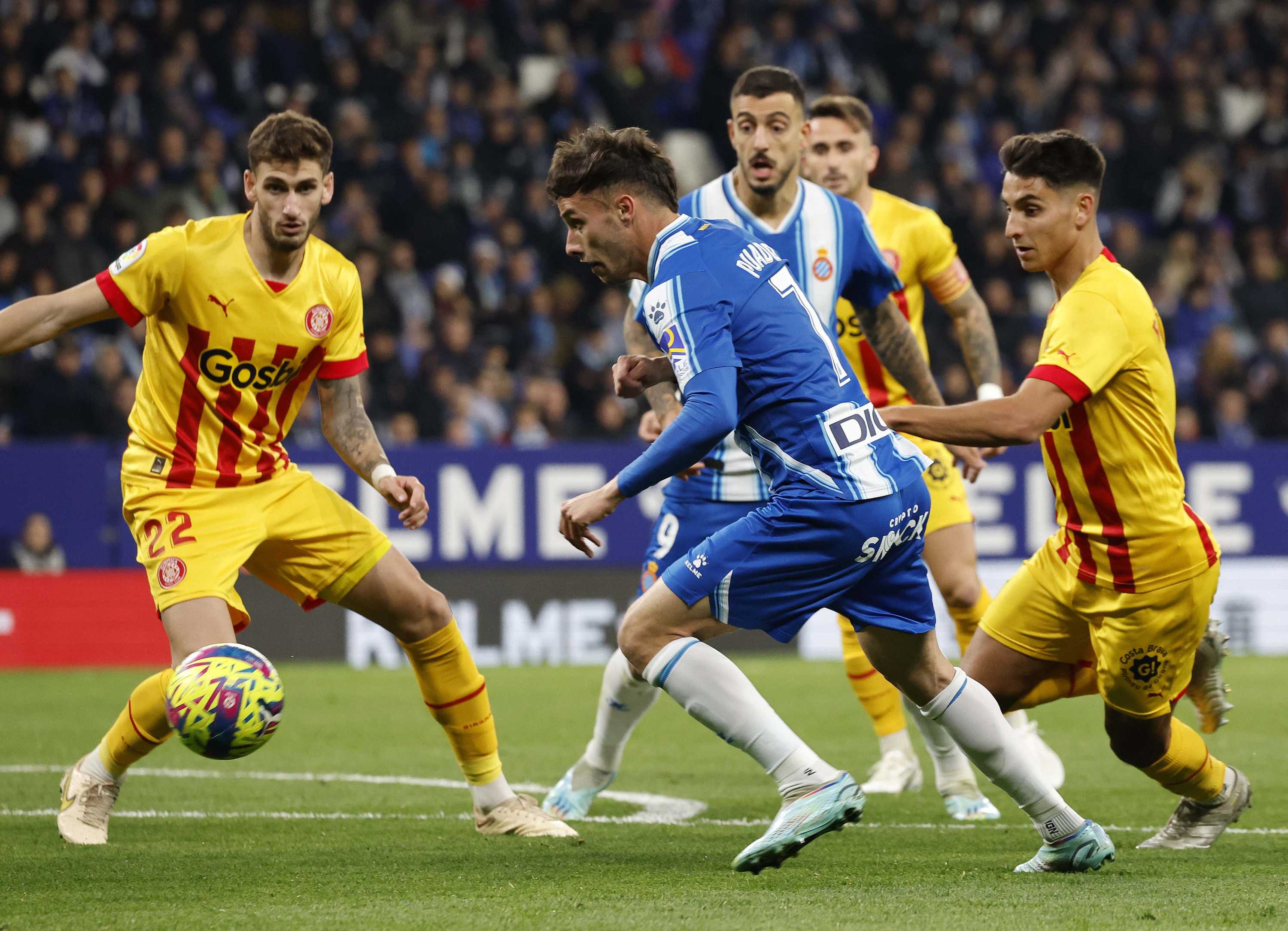 第19分钟,达德尔前场连续摆脱后分边,布莱斯维特小角度直接打门被扑出。第32分钟,对手打进一球。西班牙人0-1赫罗纳。第37分钟,布莱斯维特传中,何塞卢甩头攻门被门将扑出。