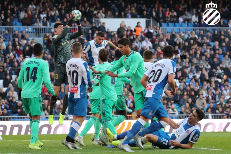 第27分钟,西班牙人前场反抢成功,卡莱里传中到后点,格拉内罗头球攻门被库尔图瓦扑出。