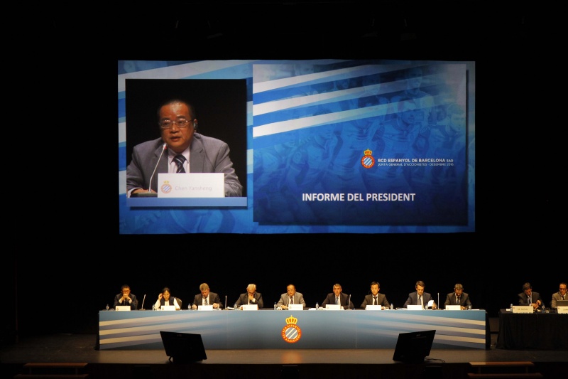 皇家西班牙人足球俱乐部于西班牙时间12月13日在巴塞罗那的科尔内拉召开年度股东大会,俱乐部主席、中国星辉互动娱乐股份有限公司董事长陈雁升先生率领俱乐部董事会成员及管理层出席了本次会议。
