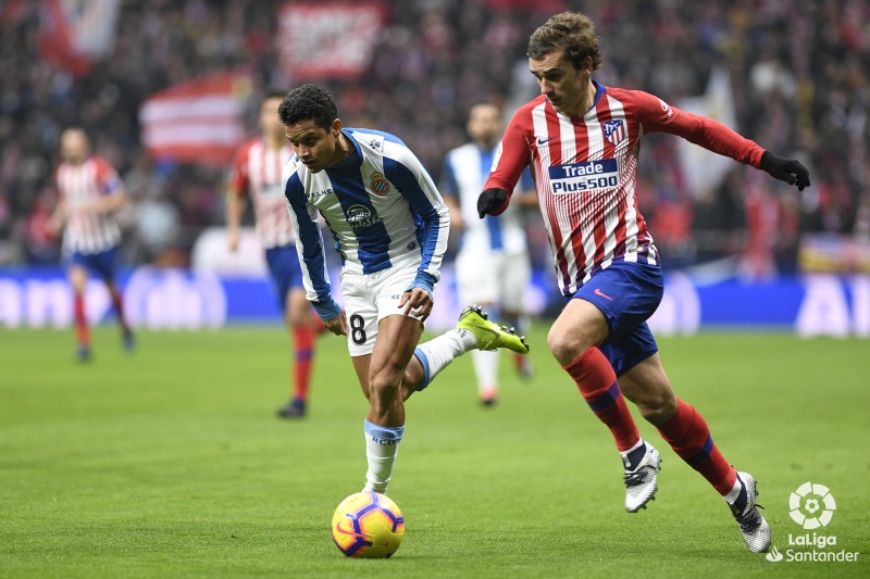 后退 1-0: 西班牙人客败马竞 “熊猫”吊射险破门,格列兹曼打进点球 一线队 22/12/2018 18:00:00 西甲第17轮,西班牙人客场挑战马德里竞技的比赛在万达大都会球场进行。主帅鲁比派上三中卫主打防守反击。上半场前锋博尔哈在一次的反击中吊射险些破门。随后的一次机会,巴普蒂斯唐在禁区内的打门也没能命中目标。下半场,格拉内罗禁区犯规被判点球,马竞由格列兹曼点射命中。最终西班牙人客场0-1不敌马德里竞技。