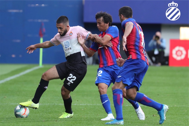 上半场补时阶段,埃瓦尔继续利用两边传中的战术,这次乾贵士在后点拿到球,横传给禁区外的埃克斯波西托,他的推射偏出球门。半场结束,埃瓦尔0-0西班牙人。