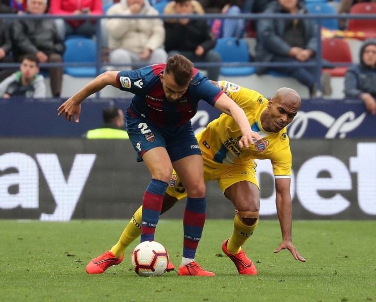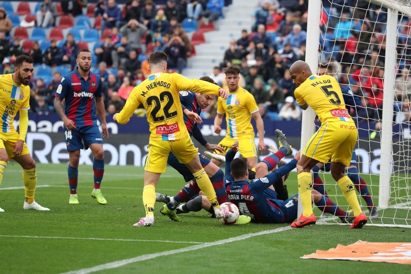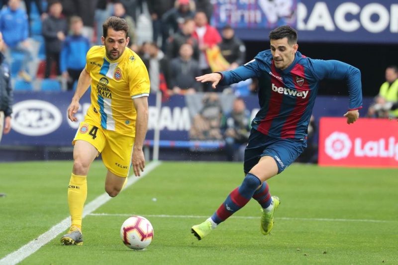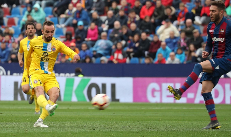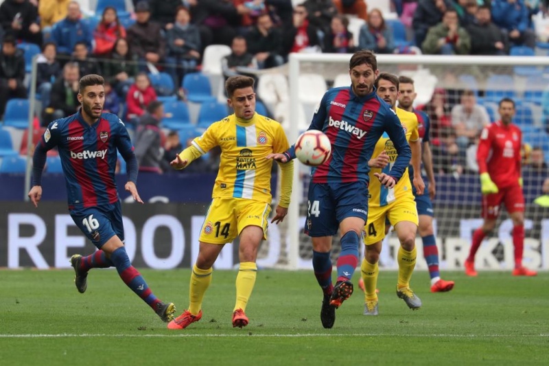 比赛进入下半场,一球领先的西班牙人球员并不保守,不断寻找反击的机会。第50分钟和53分钟,普阿多两次射门。第62分钟,依靠一次间接任意球机会,莱万特将比分扳平。