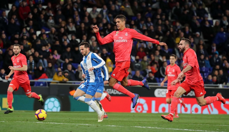 但上半场结束前,西班牙人再丢一球。本泽马在左路拿球内切送出横传造成禁区内混乱,他趁机跟上推射远角得手。西班牙人1-3。