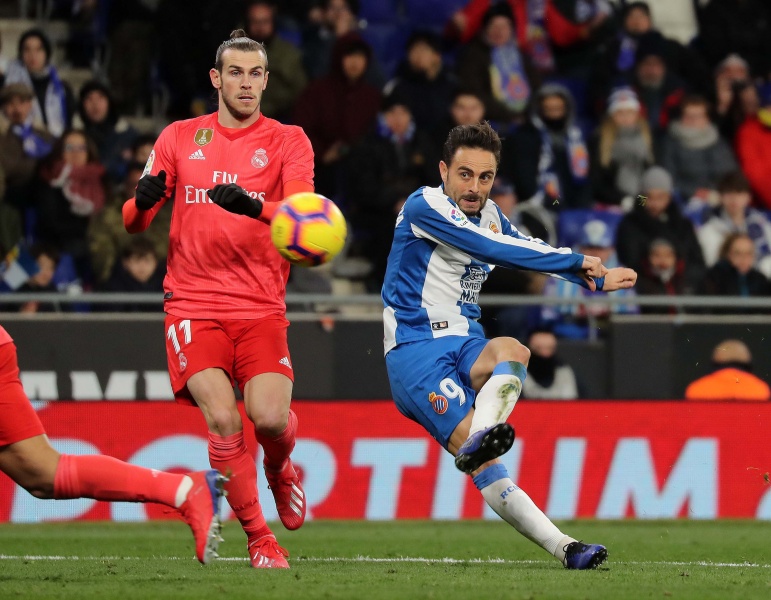 第81分钟,马克-罗卡长传送到禁区,罗萨莱斯胸部停球后直接凌空抽射破门,西班牙人再扳一球,但最终仍2-4不敌皇马。